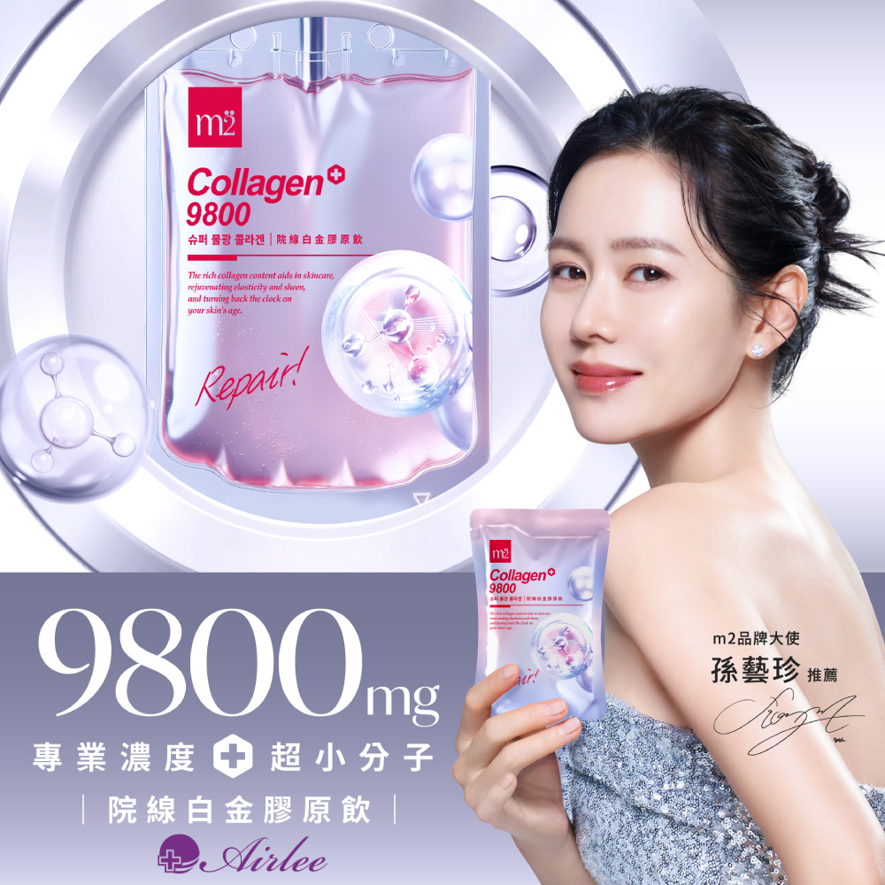 台灣醫美龍頭愛爾麗集團,和由韓國女神孫藝真代言的機能口服保養品牌m2美度強強聯手!推出白金版9800mg膠原飲禮盒,強調極小分子搭配高含量膠原蛋白,主打是專為醫美療程研發的膠原飲,愛爾麗董事長常如山、總經理劉貞華以及m2美度品牌負責人,今日一同現身記者會,並現場簽約宣告此話題合作。