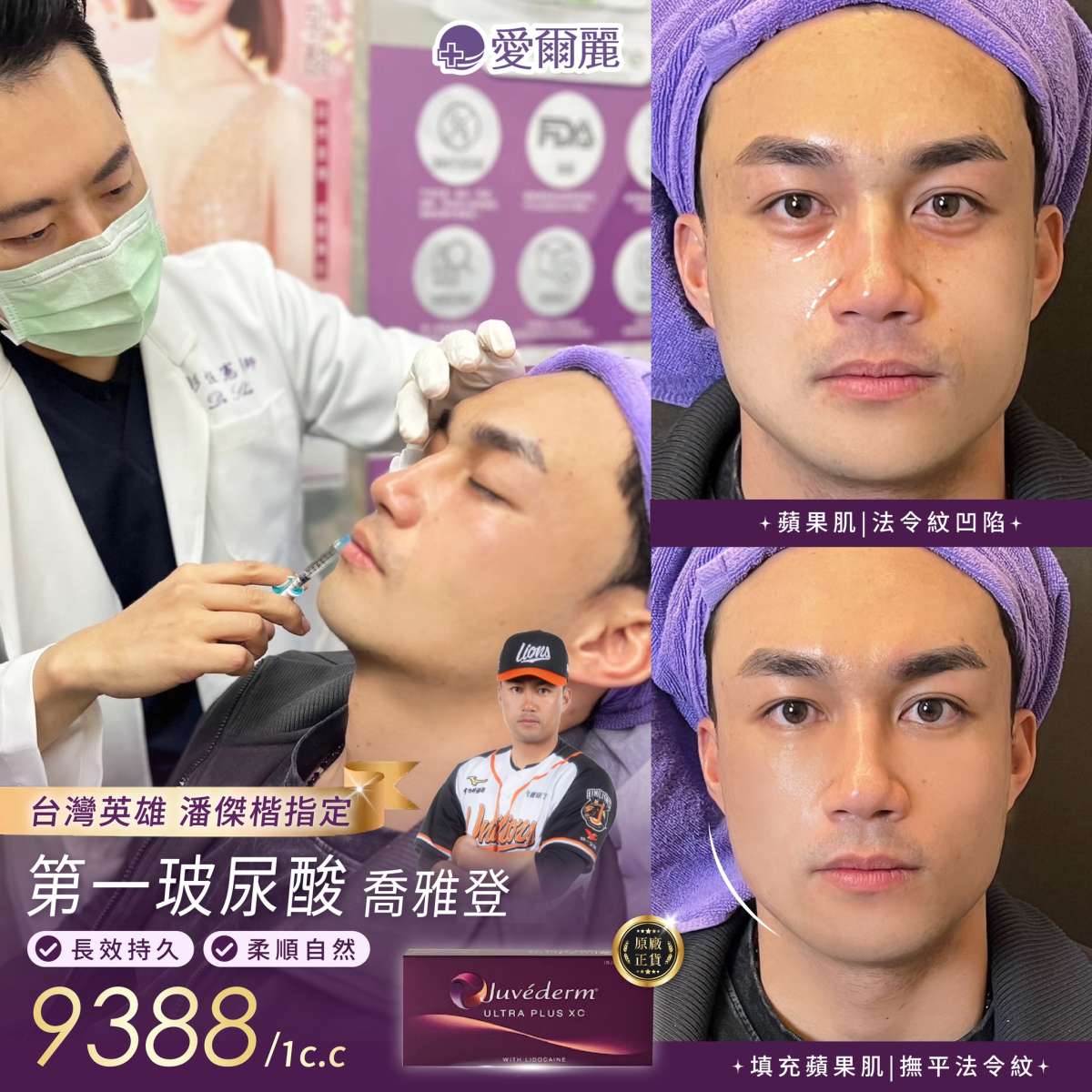 在球場上也要保持最佳狀態 跟著潘傑楷一起打擊⚾️凹陷|法令紋 ✦— #喬雅登玻尿酸 —✦ 9388/1c.c. 中分子玻尿酸 填補凹陷/紋路 太陽穴 蘋果肌 頰凹 法令紋 長效持久 柔順自然 不斷挑戰極限 肌膚也要不斷呵護 快來 #愛爾麗 #喬雅登玻尿酸 #蘋果肌 #法令紋