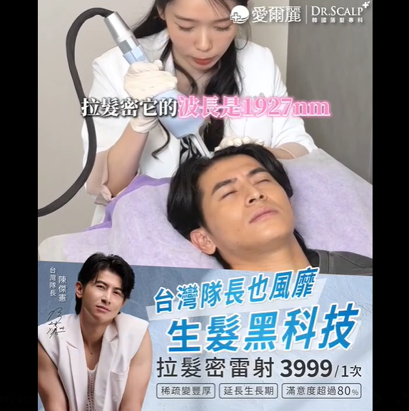 台灣隊長也在做的生髮黑科技 你還在擦生髮水、吃口服藥嗎? 台灣隊長 #陳傑憲 親自體驗 ✦— 拉髮密雷射 3999 / 1次 —✦