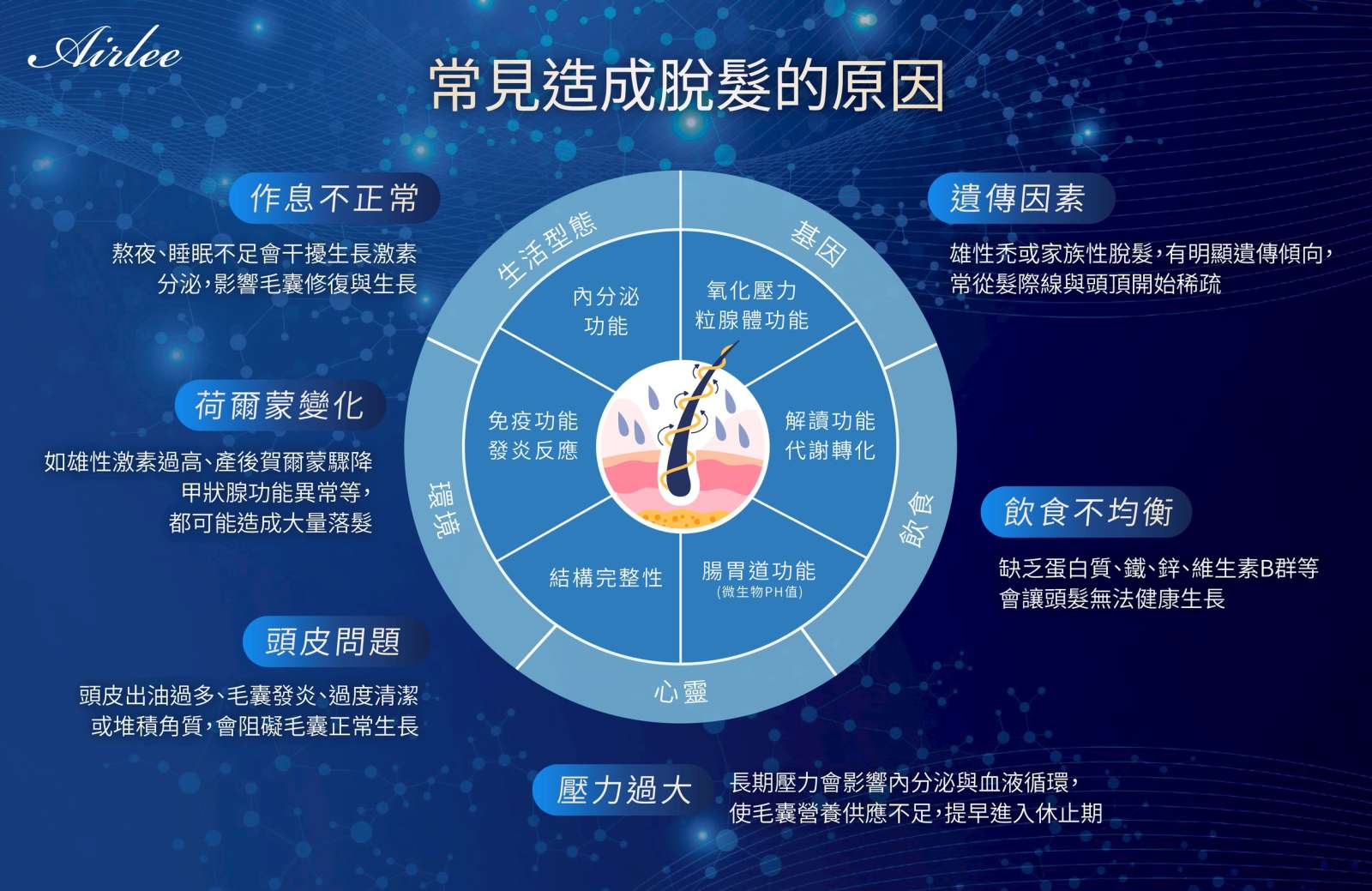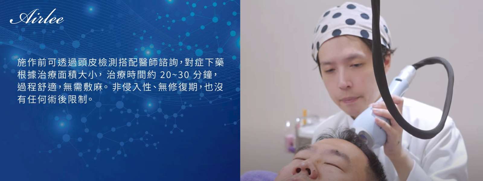 A:主要是改善頭皮環境與微循環,對初期雄性禿者有輔助效果,但不是生髮藥物,嚴重掉髮應搭配其他療程。