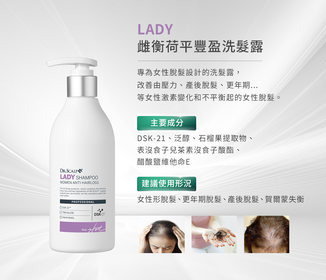 🌸 專為女性脫髮設計,改善因壓力,產後,更年期激素改變所產生的脫髮,同時不過度清潔,維持天然保護膜。