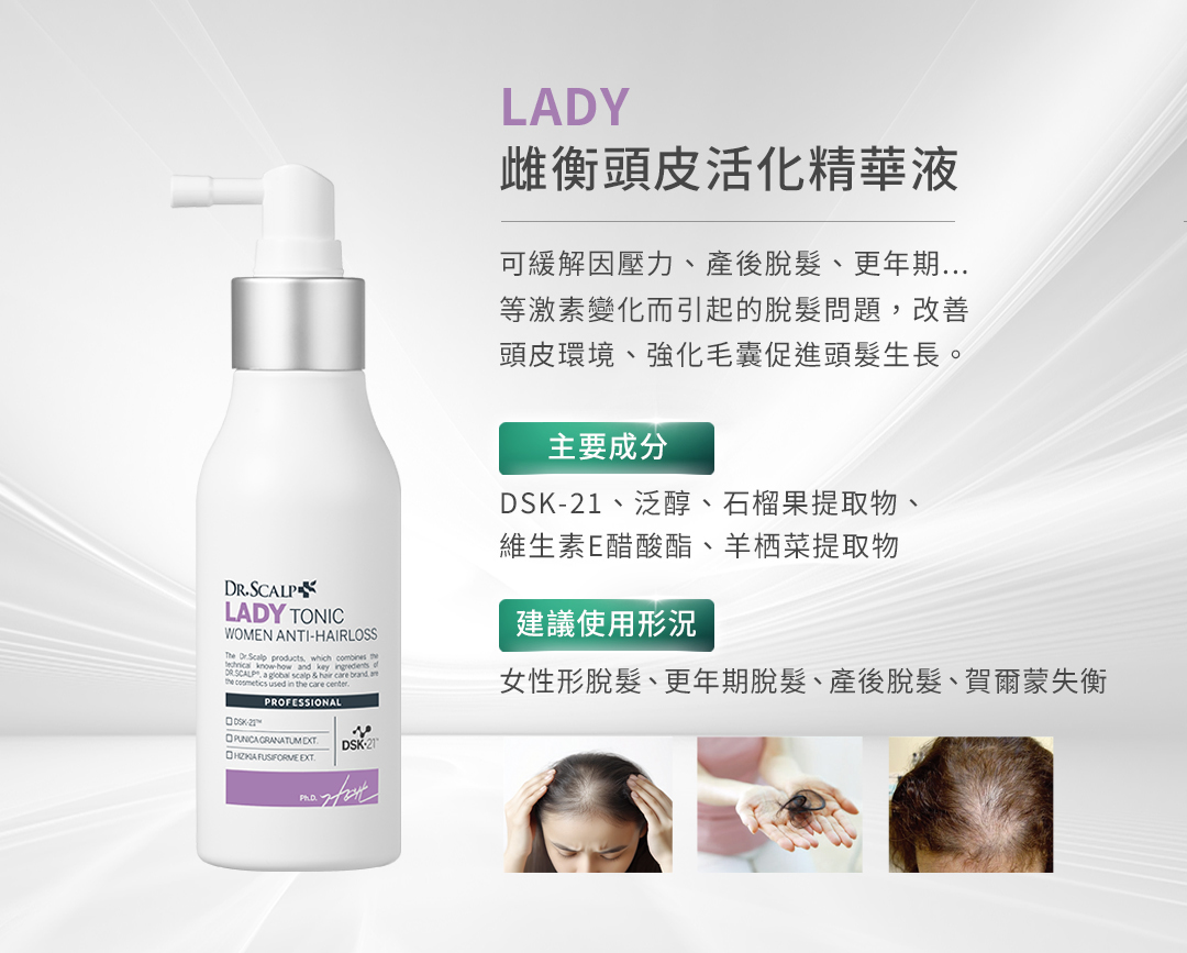 🌸 油脂平衡護理 專為女性脫髮設計的精華液,改善女性因激素變化和生活不平衡引起的脫髮問題,幫助頭皮恢復彈性.擁有健康的秀髮。