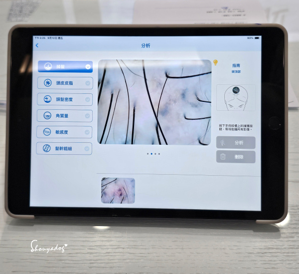 填完之後,就會開始做頭皮檢測,平板上面會同步顯示你的頭皮狀況和問題~