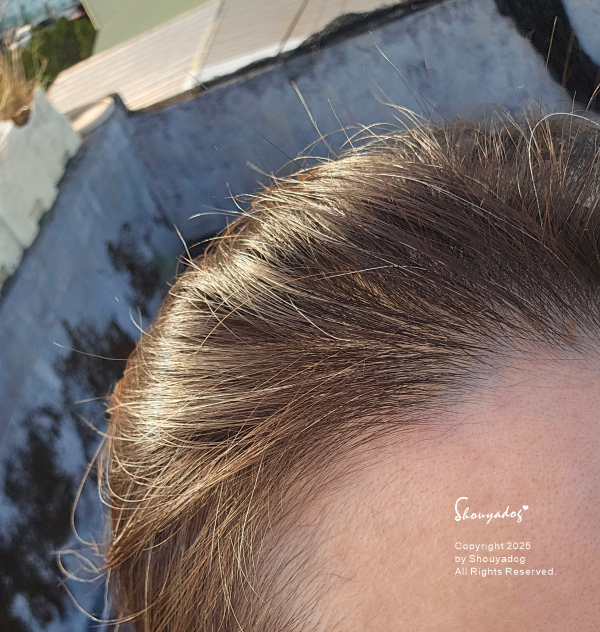 髮根和毛流明顯變的比較自然的感覺,也比較不貼了。